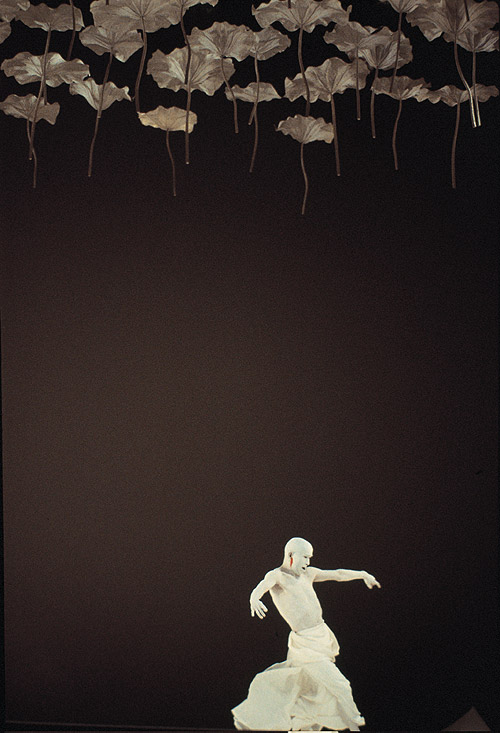 我一直試圖理解,舞台上的那些是什麼。在整片蓮花池緩緩升上去之後,一群全身塗白的光頭舞者彷彿水面下的鬼魅,似男似女又似沒有性別,以一種從沒看過的舞步,緩緩地移動身體,向天空伸出雙手,又放下來,時緩時急。