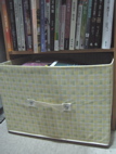3. 99元紙布包厚紙板收納箱。在逛書架發現名人的書櫃都很亂的時候我也讓我的書櫃無節制的亂了。但其實我並不習慣這樣的混亂,開始把橫著擺的書都擺正了以後發現我小小的四格櫃很快就會不夠用了,想像著如果最下面一格也可以擺東西就好了,四格櫃最下面一格離地面太近,取用書本不是很方便,這長得像抽屜的收納箱就這麼出現在我的眼前。雖然我很懷疑這東西不能耐久。 NT 99