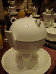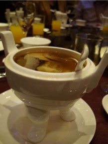 下面這是弦紋鼎佛跳牆,它還有個可愛的蓋子,不過這弦紋鼎的腳很肥,害我一直想到Spore的生物。要強迫自己不要亂想才能好好吃。結果它居然有山藥沒有芋頭!