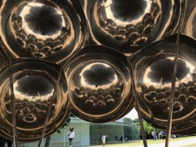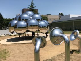 在金澤最喜歡的地方就是這個美術館了。從外面繞一圈,可以透過透明的玻璃看到裡面分別是一間間的休息室、閱覽室、兒童室等空間,即使那些當代藝術有時候實在是沒有感覺,這特殊的建築空間本身,以及室外的幾件雕塑作品,就足夠好玩了。館內的廁所也放了一件作品,靠太近還會逼逼叫。